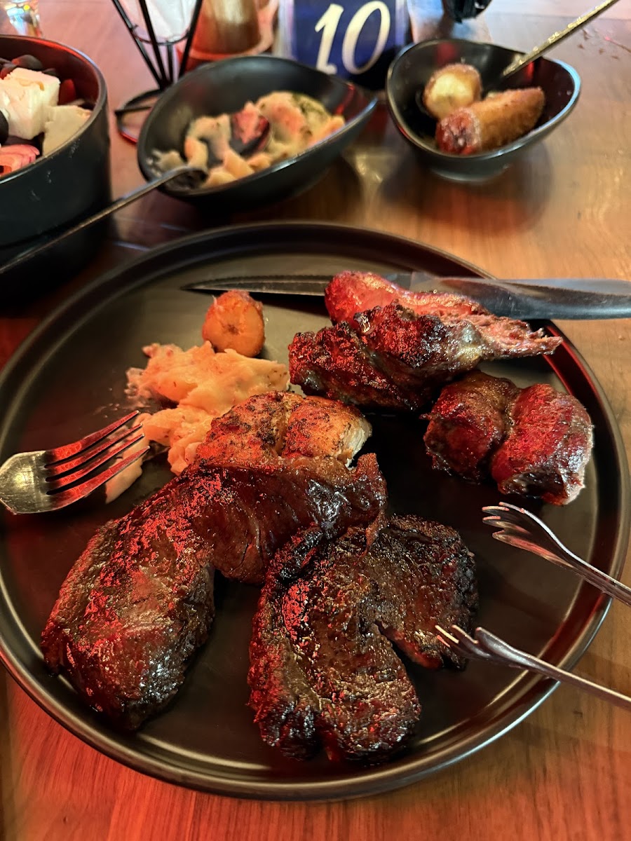 It was delicious! I brought my family here to give it a try since they never had am all you can eat this way. They bring the meat to your table and cut the pieces in front of you and you use your personal little tongs to grab the food. It is all different types of meat and honestly they seasoned these meats beautifully. They wete all tender and cooked well. Honestly so incredibly impressed with how flavorful each different meat was. The sides are delicious especially the creamy mashed potatoes. We also got passionfuit margaritas and they were very tasty as well. Definitely would go back!
